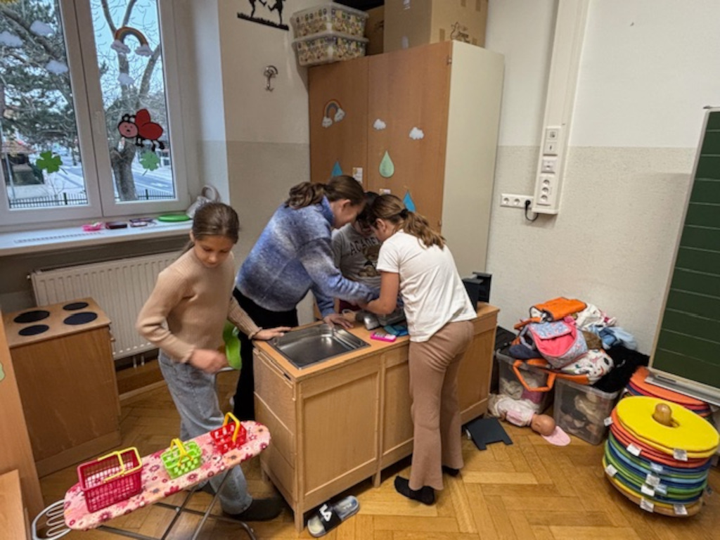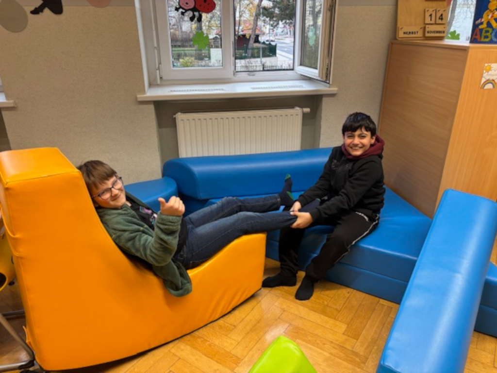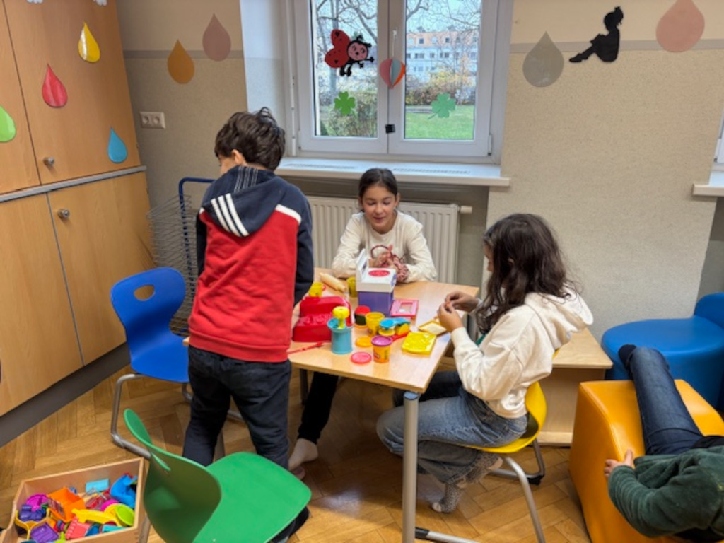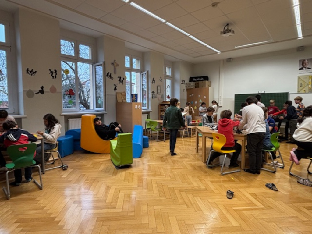 Die 4b liebt die Spielzeit auch im Freizeitraum.