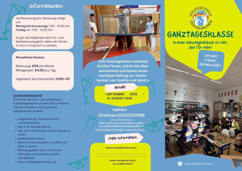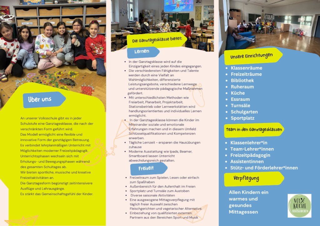 An unserer Volksschule gibt es in jeder Schulstufe eine Ganztagesklasse, die nach der verschränkten Form geführt wird.